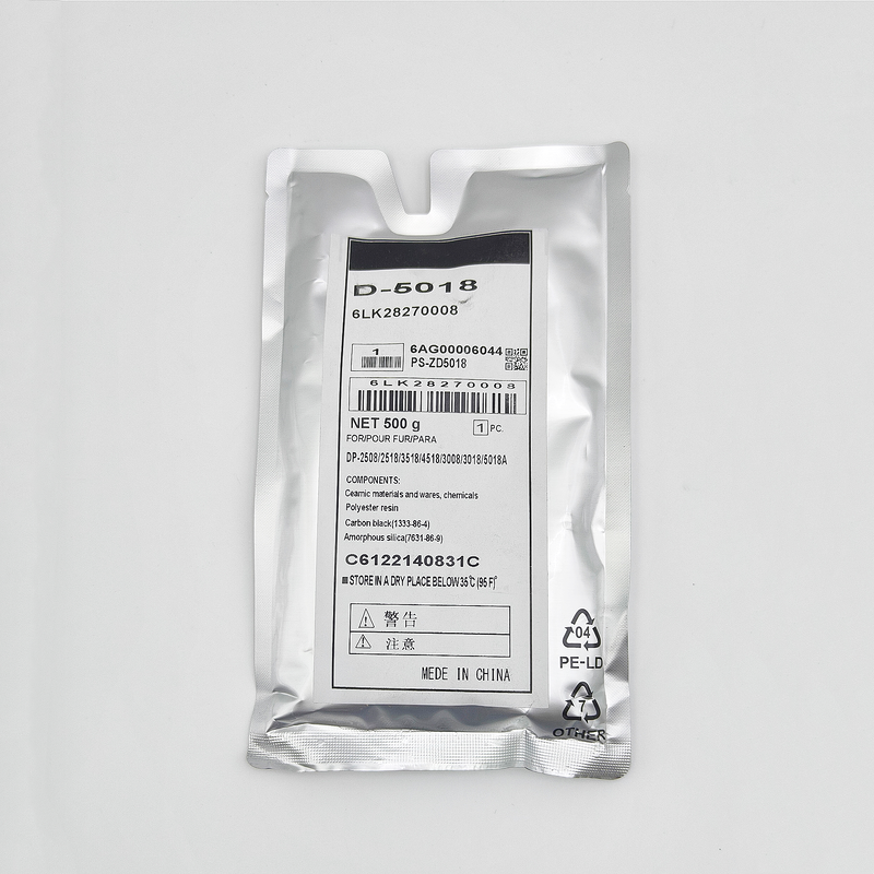 We manufacture strict D-5070 powder which follows exact triboelectric properties specified by factory standards, producing black text, crisp edges, and the full density required by the printer. Toner does not "dust" or scatter.